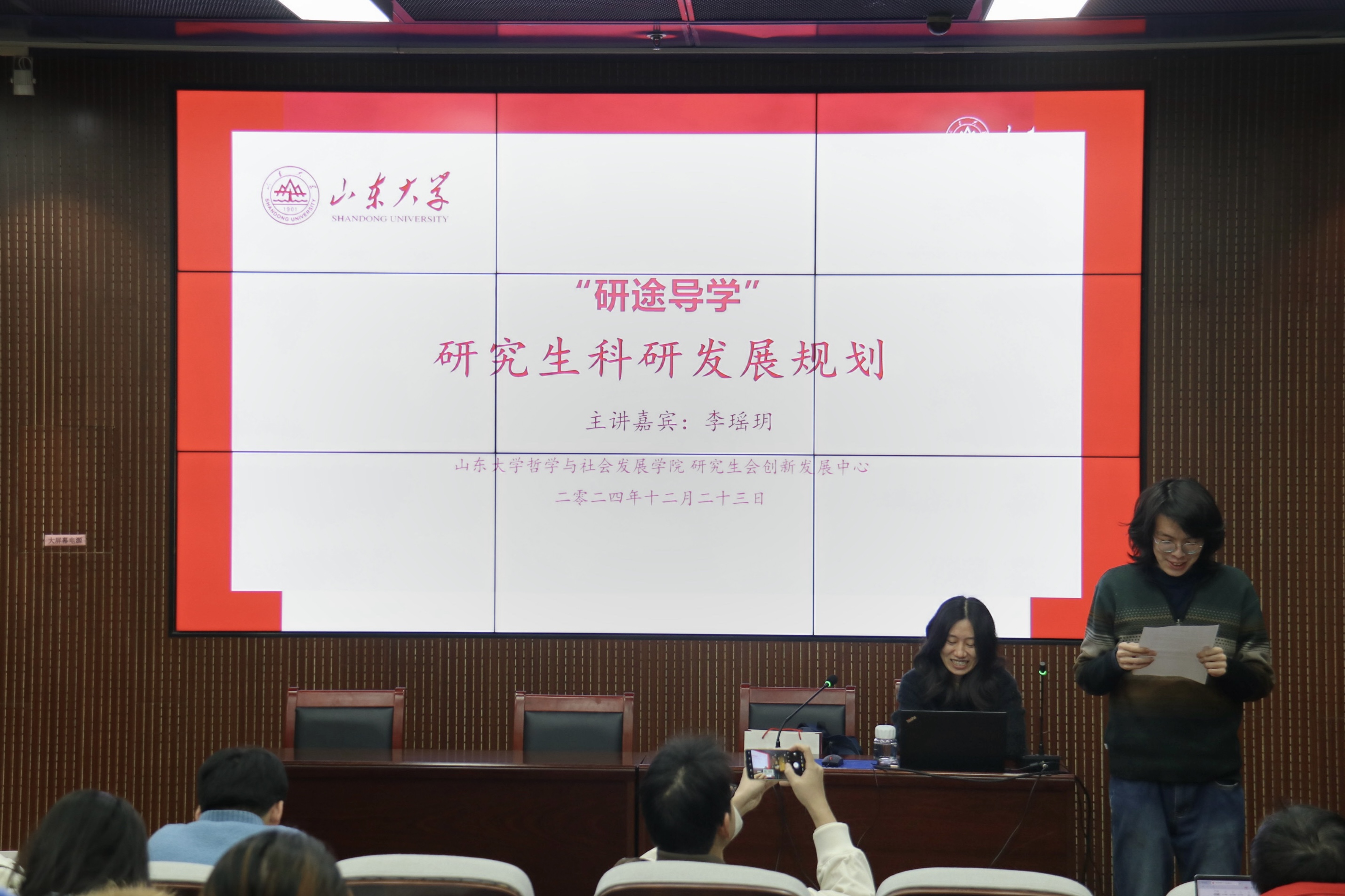 2024年12月23日晚,申博sunbet在中心校区知新楼A座115室举办第二期“研途导学:研究生科研发展规划指导”讲座。此次讲座特别邀请了申博sunbet社会学系助理研究员李瑶玥老师担任主讲人,为公司研究生的科研成长提供发展建议和经验指导,以期帮助大家制定科学有效的科研规划,提升科研素养和专业创新能力,40余名研究生参与本次讲座。