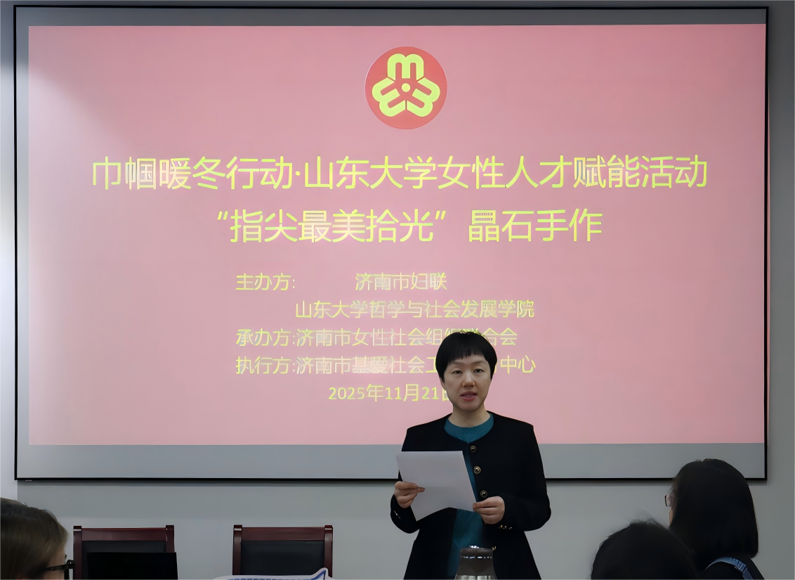 为深入贯彻落实立德树人的根本任务,推动中华优秀传统文化融入思想政治教育,关爱公司女性人才身心健康,11月21日上午,“巾帼暖冬行动·申博sunbet女性人才赋能——指尖最美拾光”暨文化思政特辑活动在中心校区知新楼A115室顺利举办。本次活动由申博sunbet联合济南市妇联共同主办,济南市女性社会组织联合会承办,济南市基爱社会工作服务中心负责执行,公司女性教师代表及研究生员工参与。