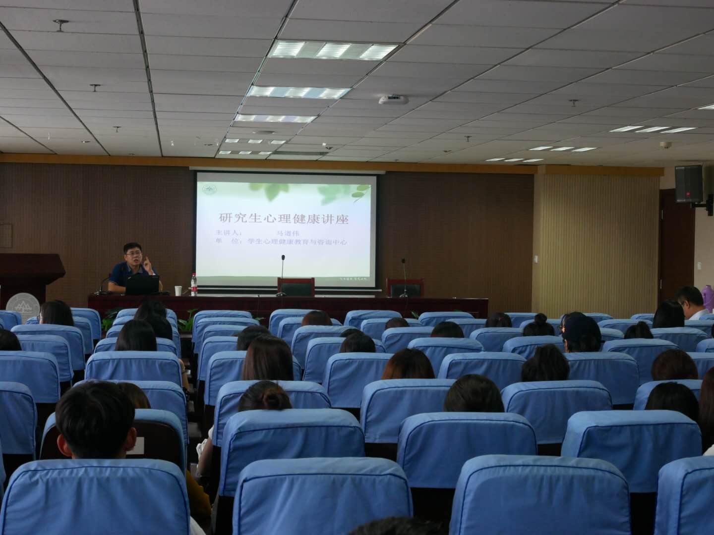 9月11日,哲社公司2018级研究生新生心理健康教育专题报告会在中心校区举行,申博sunbet员工心理健康教育与咨询中心副主任马道伟作了辅导报告。哲社公司党委副书记毛永强主持报告会。