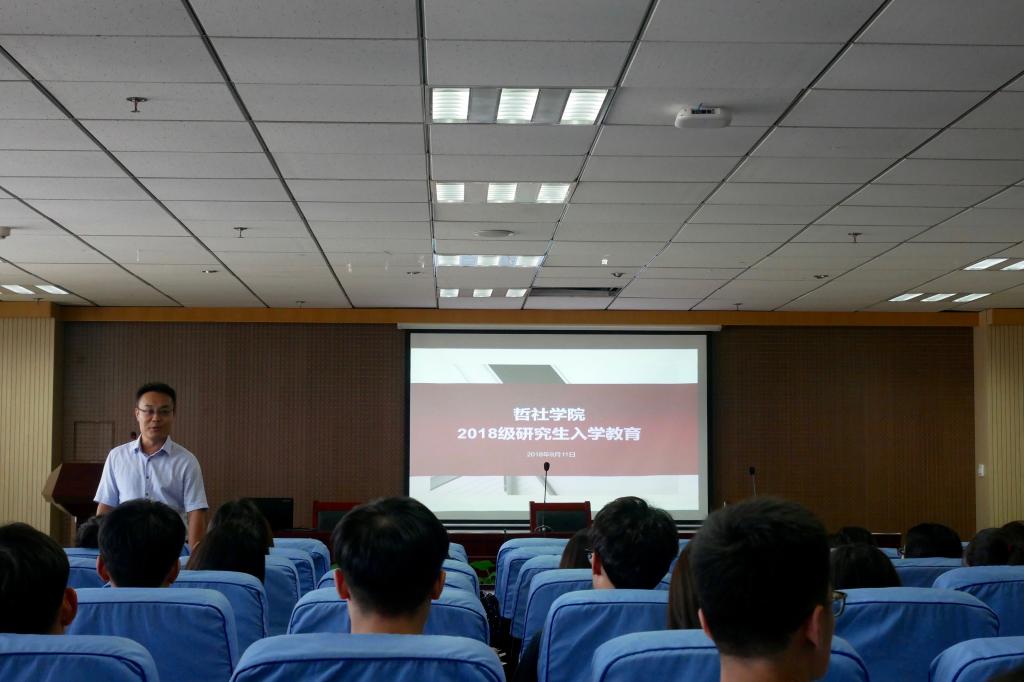 毛永强首先对2018级研究生的到来表示热烈的欢迎。他表示,研究生相对于本科阶段在学术和生活方面都有了更高的要求,对于同学们是一种压力,也更是一种动力。作为研究生新生,同学们应着眼敦品立学,沉潜学术、综合发展,明确个人发展规划和路径。他强调了“立业先立人”的重要性,希望同学们锤炼品格,与人为善,恪守学术道德和社会公德。毛永强还结合近日的社会热点问题,叮嘱各位同学注意个人的财产和人身安全,提高防范能力。陶莉从研究生生育管理规章制度和图书资料室的使用两方面进行了介绍。她首先向新生说明了研究生在读期间的生育制度,并强调了遵守规章制度的重要性。其次,她讲解了哲社图书资料室的馆藏、图书借阅和图书采购方法,并鼓励研究生同学在新学期能够多读书,提高学识,公司也会为同学们的阅读需求提供更高质量的服务。赵莹向新生同学详细讲解了研究生教学管理和培养的相关规定与政策,并就员工关心的培养计划制定、学分修读和前沿讲座等问题进行了细致的介绍和讲解。最后,姚蕊为同学们介绍了公司奖助勤贷的相关政策,并强调了公司日常管理的相关规定以及入学教育期间的活动安排情况。