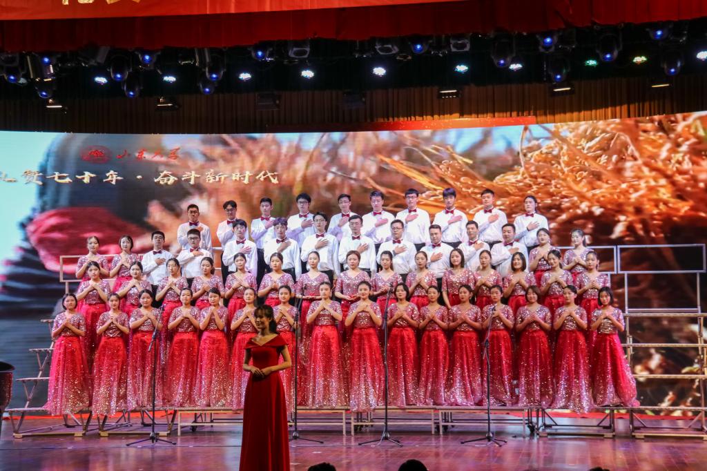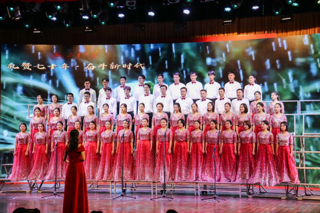 为迎接中华人民共和国成立70周年,为落实立德树人的根本任务,激发员工热爱祖国、热爱家乡、热爱艺术的情感,10月27日下午,2019年在中心校区音乐厅举行了“礼赞七十年·奋斗新时代”研究生合唱比赛。公司党委副书记仝兴华出席活动并颁奖。全校32个培养单位、全校各院系约1500名师生用最嘹亮的歌声和最浓厚的爱国情怀,追忆中华民族从站起来到富起来、强起来的历史性飞跃,共同献礼新中国的七十华诞。