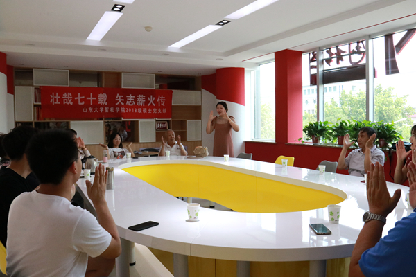 6月18日上午,2018级硕士党支部赴解放路社区开展社会实践,在社区党员活动室召开“不忘初心,薪火相传”新老党员主题座谈会,居委会主任孙薇、社区“解放先锋”志愿服务队的七位老党员出席。此次座谈旨在促进年轻员工党员与社区老党员的沟通和交流,引导年轻党员学习党的优良传统,学习和传承老一辈党员的精神财富。