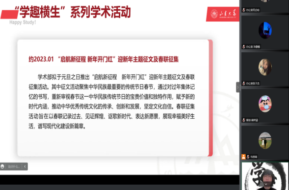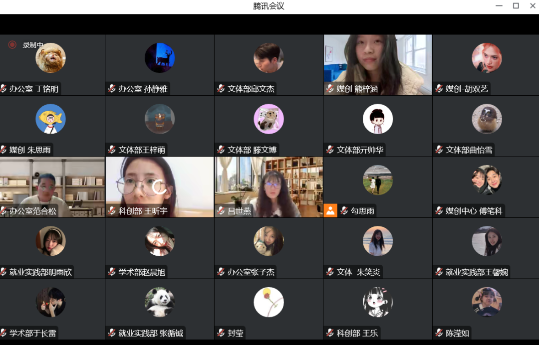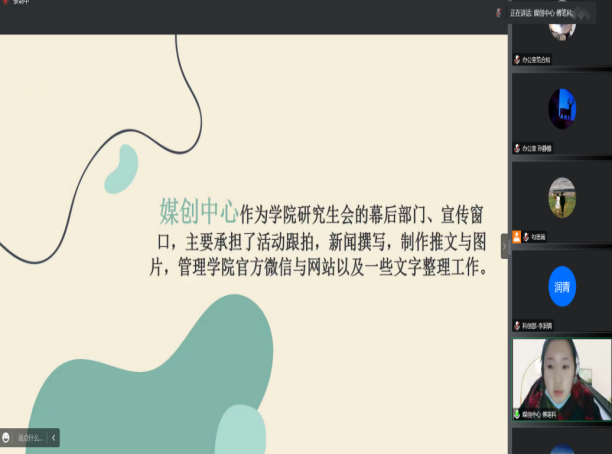 最后,研会的每一位成员依次进行了发言,表达了自己对于研会工作的想法与自身未来工作的设想,话语中透露着对研会大家庭的热爱,对研会未来工作的热情,充分展现了哲社研会相辅相成、共同协作的精神,活动也在大家的欢声笑语中结束,全体参会人员线上合影留念。
