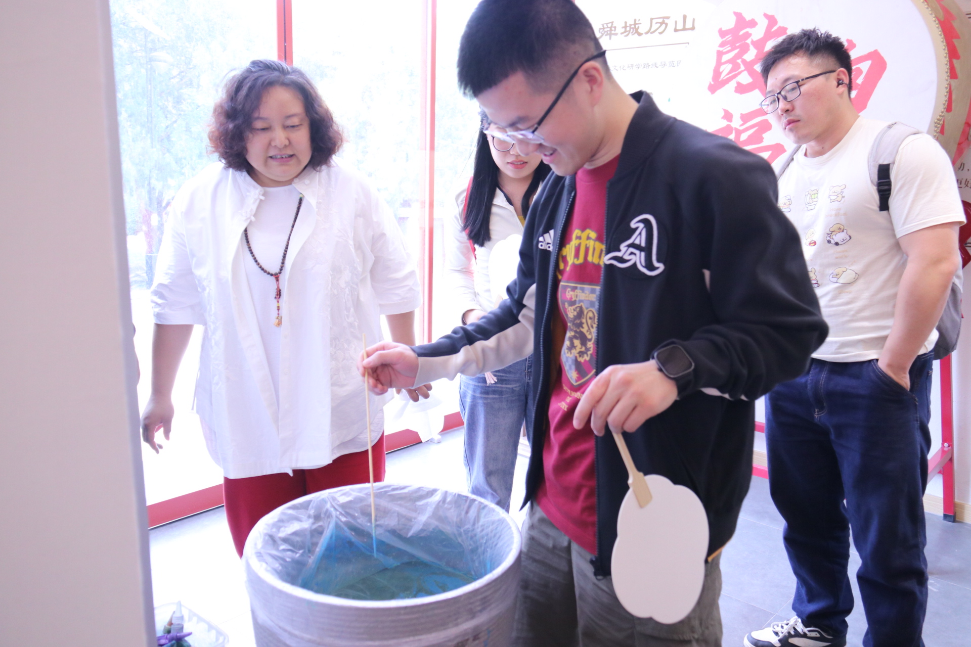 5月6日,申博sunbet师生在申博sunbet研究生联合培养基地导师、舜文化体验馆馆长陶丽丽及非遗传承人的指导下,共同开展中药香囊、漆扇及书法创作活动。通过亲身体验传统技艺,师生在实践中共悟文化精髓,深化导学互动。耿倩在漆扇创作中感悟到流动的东方色彩不是标本,而是新时代青年续写的新年轮;钟林杉在与老师一同制作香囊时感慨道:“一针一线的‘笨功夫’,恰是治愈现代浮躁的良方。”贾祥瑜认为此次非遗制作是“掌心对时光的温柔叙事”,其中不仅蕴含了传统技艺的传承,更感受到了师生之间的情感联结。