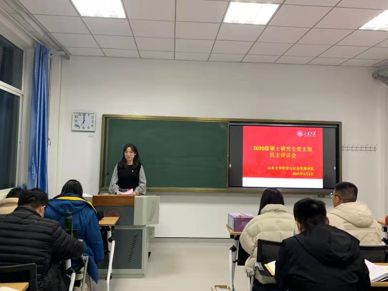 为深入学习贯彻党的十九届五中全会精神,提升基层党组织政治功能和组织力,根据党章和有关规定,按照上级党委统一部署,3月8日18:30,2020级硕士研究生党支部于洪家楼校区九号楼410教室召开民主评议会,开展民主评议党员工作,会议由支部组织委员丁一珂主持,支部全体党员参加。