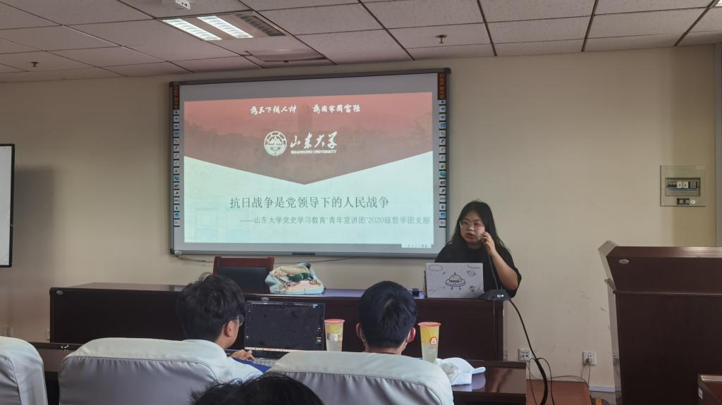 为认真学习贯彻习近平总书记在党史学习教育动员大会上的重要讲话精神,作为山大东大学党史学习教育“青年宣讲团”成员,申博sunbet第31期团校哲社宣讲团积极响应申博sunbet青马工程党史宣讲活动,于5月18日、5月20日在20级哲学班团支部、20级社会学一班团支部开展“学习抗日党史,感悟家国情怀”宣讲活动。团队成员主持,团支部成员参与。