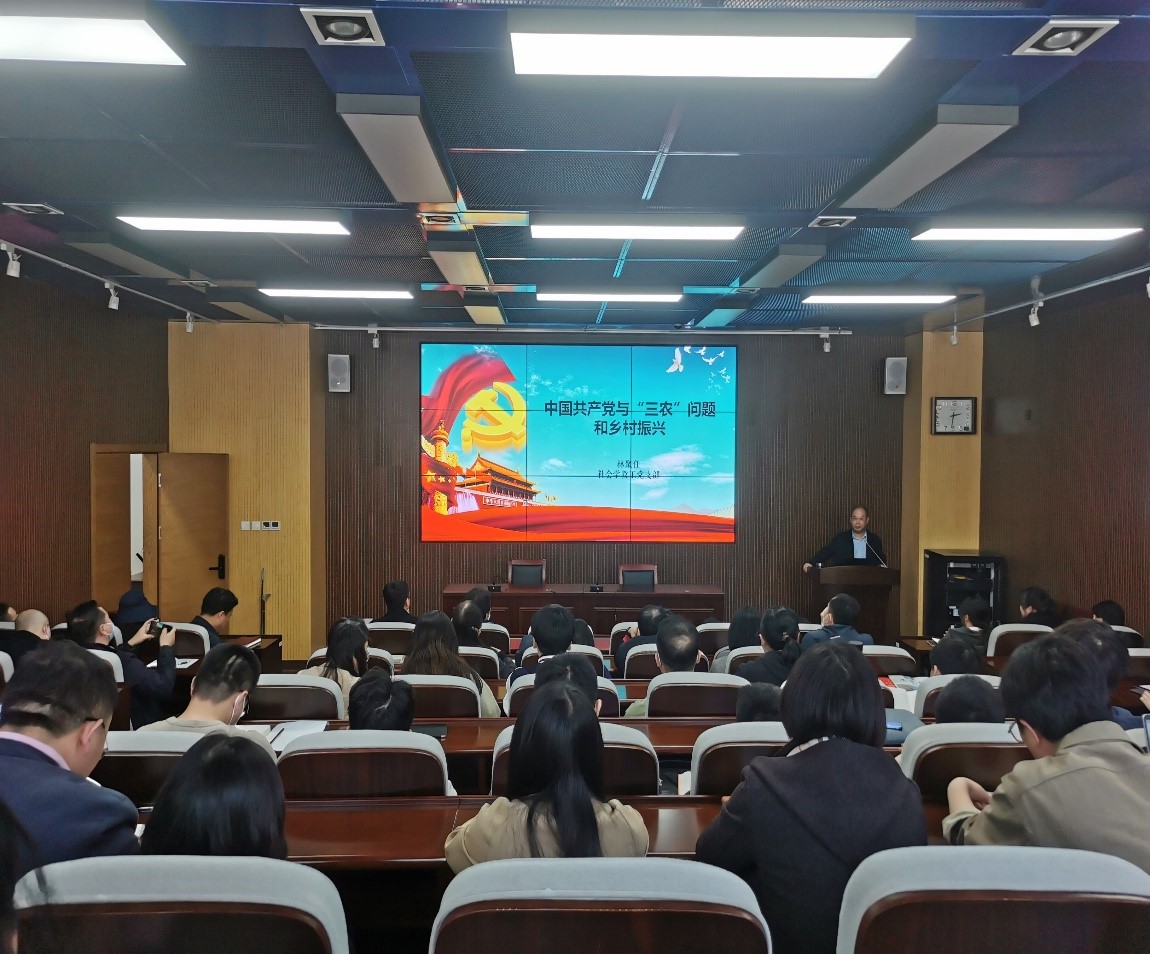 为进一步落实主题教育“学思想、强党性、重实践、建新功”的总要求,提升主题教育的针对性和时效性,增强学习效果,4月27日下午,公司举办了“中国共产党与‘三农’问题和乡村振兴”主题党日专题党课。党课由社会学系教授、博导林聚任主讲,领导班子成员和全体教工党员和员工党员代表参加。